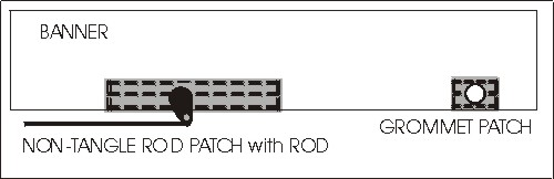 Suggestion: A grommet patch is very useful in preventing a flag or banner from wrapping itself around a outrigger pole or wire cable. The extra layers of material which make up the patch allow for the extra grab of material needed to insure that the grommet does not pop-out under stress. With one end of the rope or tension cord tie-down attached to the building, you would attach the opposite end to the grommet. Suggestion: If you purchase a non-tangle rod, request that the banner or flag you purchase from us have a non-tangle rod patch sewn on to strengthen the area of the flag or banner where the clamp is attached. We charge a small modest fee for this important extra protection.